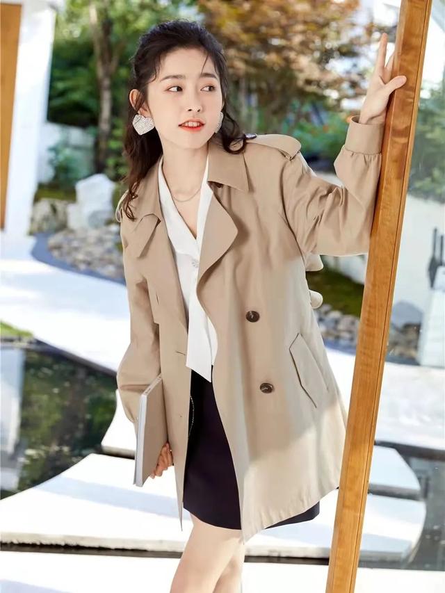 工作室小凡之前入手了这件短款收腰风衣,衣长76cm,上身很显高。