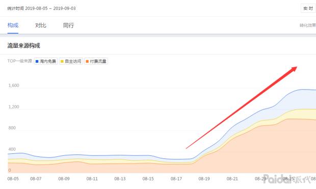 上面是徒弟8.18开始操作的,可以看到效果非常明显,直接拉动免费流量一直上涨。