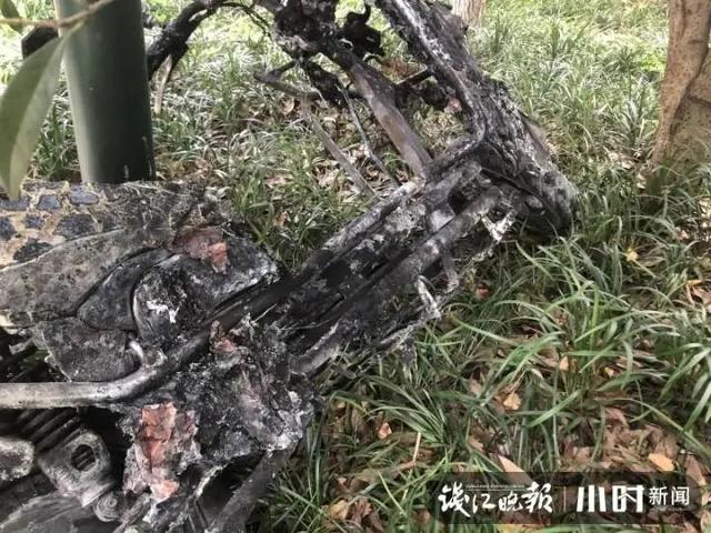在火灾调查现场,小时新闻记者再次看到了起火的电瓶车。