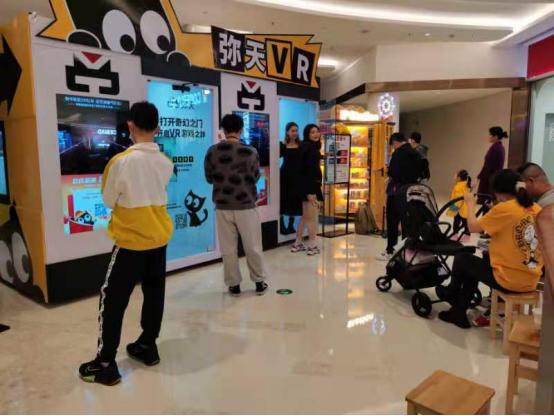 这种VR游戏馆多数就是这样摆在商场里面,也不用店员看管。也能吸引到别人过来排队玩,队伍里有年轻人也有老人小孩。