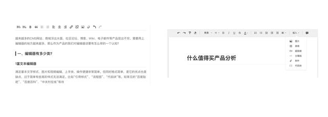 满足基本文字样式、图片和视频编辑,上手快,操作便捷非常简单。但同时格式简单,是它的优点也是缺点,过于简单有些高阶样式无法满足。比如:“引用样式”、“流程图”、“代码块”等。如常见的“百度贴吧”、“百度百科”、“中关村在线”等待。