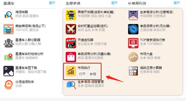 软件使用:直接点击上面页面就可以看到市场排行软件了,点击进入软后下载,下载之后就能看见如上图所示的页面,找到市场排行,商家不担心软件不会使用,因为里面有详细的课程免费教学,一学即会!