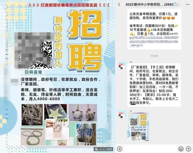 11月28日上午10时许,遂川县大汾镇农贸市场附近,出现沿街扫码免费送玩具,借机操作群众的手机,向微信好友群发“兼职刷单”广告,并批量拉好友进“求职”群。
