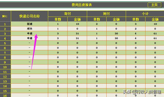 快递总费用报表自动生成