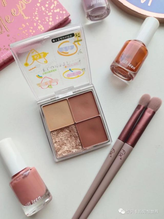 我这盘是#奶茶党,包装好可爱。配色挺实用,挺适合日常通勤用的。亚光色做得还蛮软糯,好晕开,它的棕色里带了点粉调,画在眼睛上不会显脏,反而还挺温柔的,我平常上班的时候用这三颗哑光色就够了,出去玩就可以再点缀一些亮片。▼