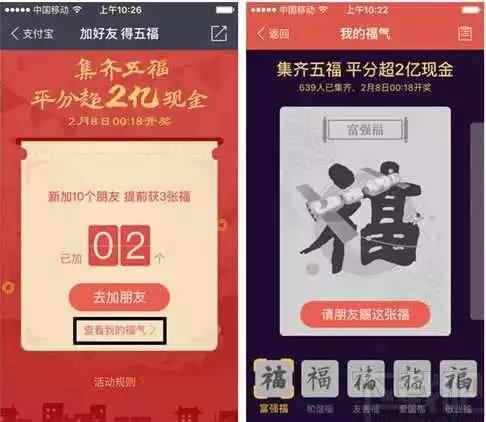 2016年支付宝五福聚会,791405用户齐聚五福,分享2.15亿大奖,平均分享271.66元。