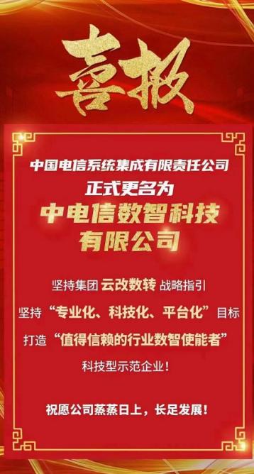 2022年1月:中国电信集团系统集成有限公司更名为“中国电信数字智能技术有限公司”,成立12个行业研究院。