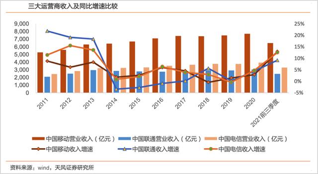 2011-2021年:三大基础运营商业绩总结。