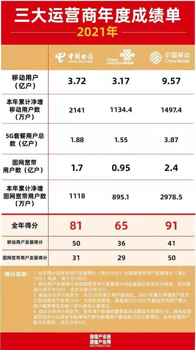 2022年1月:三大运营商用户数据报告单