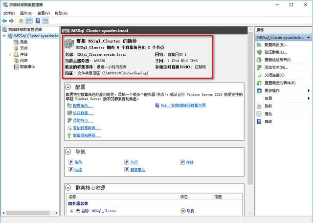 最终效果是,当任何一个节点出现故障时,另一个节点可以提供正常的SQL Server服务。