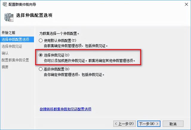 右键单击刚刚创建的集群的名称,然后选择More Actions >:Configure cluster quorum settings(q)...