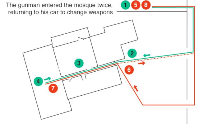 2019年3月15日,这是一个普通的星期五。克赖斯特彻奇的努尔清真寺将在下午开始主麻日的集会,届时大约有150人在里面。在布伦顿,他已经踩在脚下,计划屠杀在这里参加集会的穆斯林。在他自拍的17分钟视频中,他正开车前往努尔清真寺,一路上播放着右翼军歌。