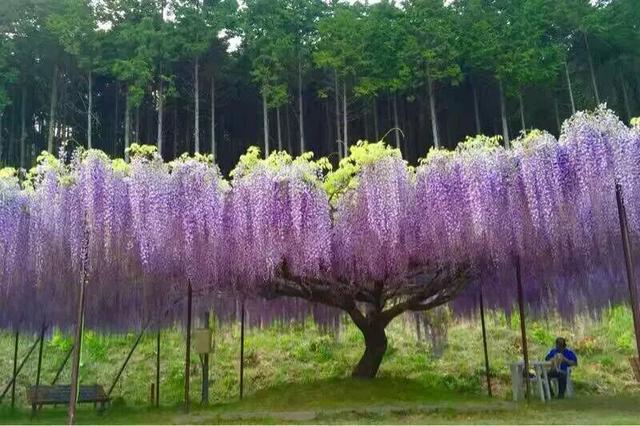 紫藤隧道的浪漫之美是其他植物无法比拟的。紫藤因为缠绕而被赋予了爱情的华丽语言。情侣手拉手走在它下面,欣赏风景,像进入了一个仙境。