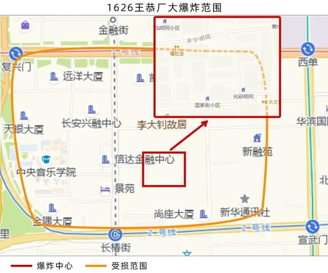 此外,位于爆炸点中心附近的都察院、天仙寺、保安寺、白虎寺等也受到不同程度的损坏。王巩工厂旁边的许氏街上,一对重达5000磅的石狮子飞出了顺城的大门。