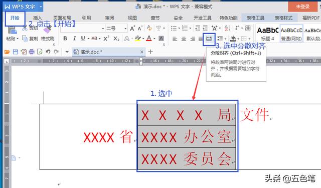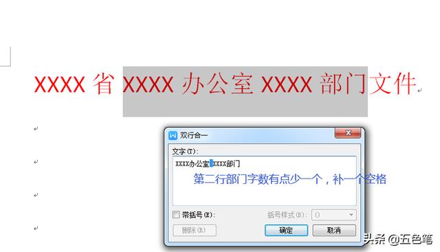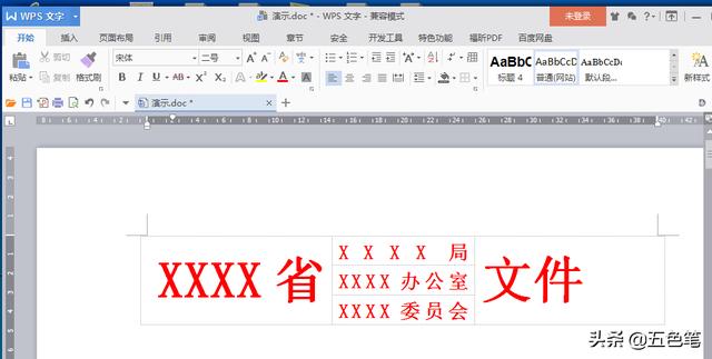 朋友在写公文的时候,遇到多个部门联合发文,需要做多行文件头/标题,不知道怎么排就有点尴尬。现在我来介绍一下如何制作下图: