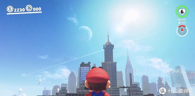 游戏一开始,当你跟随马里奥进入第一个场景——帽子国的时候,你会感受到游戏的升级(不仅仅是画面)和创意。得益于主机性能的升级,《超级马里奥:奥德赛》向玩家展示了一个比以前更加生动的世界:遥远月亮下的灯塔,漂浮在空中的帆船,风格各异的帽国建筑,以及周围的迷雾,都在这个新奇而神秘的世界里。否则,不救公主?