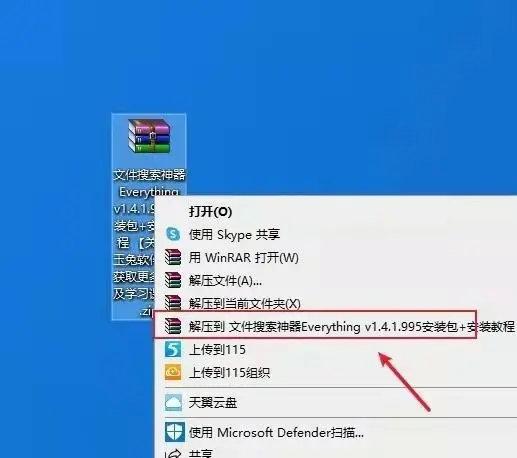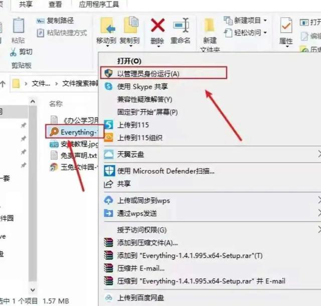 选择[Everything]文件,右键单击[以管理员身份运行];