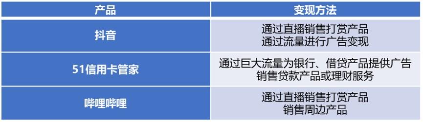 用户的变现方式有三种:通过游戏或直播销售在现实生活中毫无意义的虚拟商品,通过巨大的流量实现广告,通过电商销售有意义的真实商品和服务。