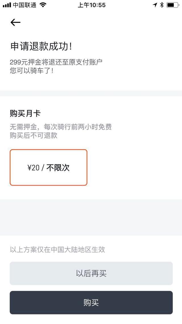 事实上,从5月份开始,摩拜单车已经陆续在合肥、杭州、东莞等城市实施无门槛免押。6月11日,摩拜单车宣布扩大免费城市,覆盖扬州、绍兴、龙岩等100多个二三线城市。6月25日,摩拜单车宣布进一步扩大免门槛免押金城市范围,天津、武汉、南京、济南、郑州、长沙等19个城市以及全国其他地级市被纳入新一批免押金名单。