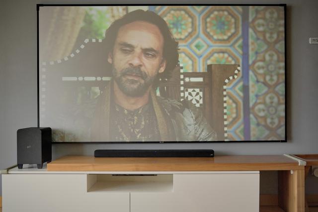 如果你之前只用过电视音箱或者2.1声道音箱,那么回音壁带来的立体声效果提升还是很直观的。用Polk Signa S4打开声音开关后,你可以立即感受到音质的改善,声音密度更高,细节感更丰富。播放ATMOS全景有声电影时,可以感受到来自不同方向的音效,非常魔幻,观影时的沉浸感非常突出。