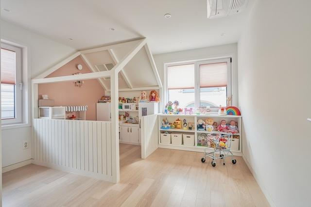 这个房间是我女儿的房间,里面专门设置了一个房子形状的储物区,用来存放我女儿的玩具。这是一间真正的公主房。