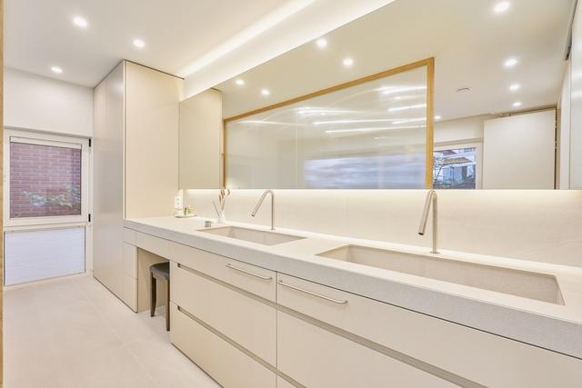 组合式洗漱柜,双槽+梳妆台+置物柜,多功能设计,营造酒店浴室般的氛围。