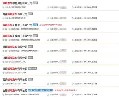“呱呱洗车”在当地的分支机构大多已被取消。全国企业信用信息公示系统网站截图