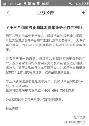 服务世界网消息,3月27日,上门洗车公司“呱呱洗车”被爆停业。