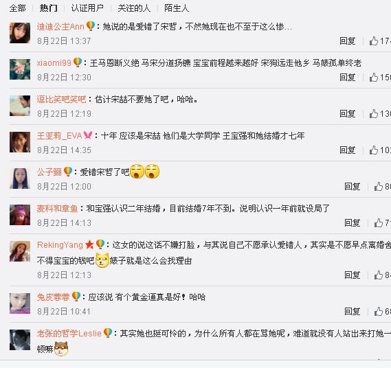 还有网友表示:“十年 应该是宋喆 他们是大学同学 王宝强和她结婚才七年” 如果马蓉指的真的是宋喆,两人分道扬镳,那这报应也来得太快了~但是也说明马蓉这几年并不是真的爱宝强,而宝强当真确是为她付出了真心…对马蓉不是一般的好啊…