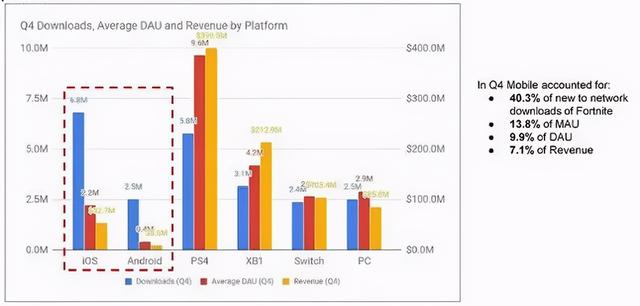 《堡垒之夜》2019年最后一个季度各平台DAU和营收数据