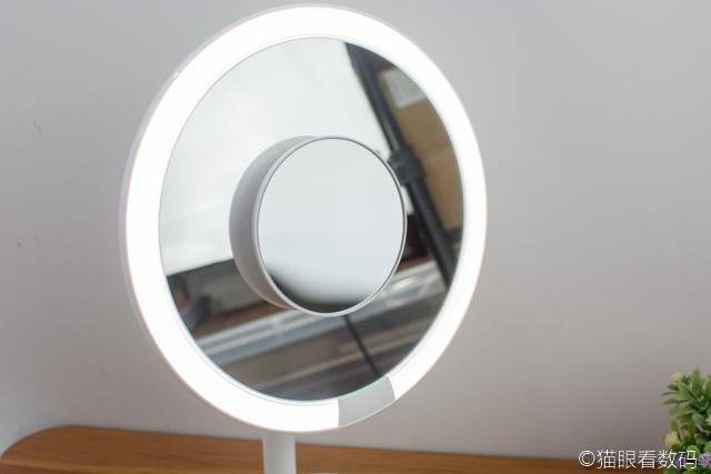 作为米粉福利的5倍高清放大镜可以直接吸附在镜面的正中,起到放大面容肌理,有利于进行更加细致的妆容打理,实用性很高。