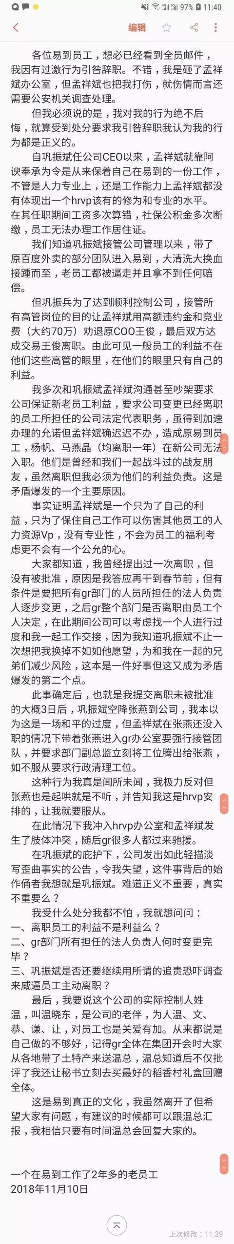 易到也为这事发了公告函,同意吕艺的辞职申请,巩振兵被罚款。至于吕艺提到的问题,ennnnn,感觉被公司选择性忽略了。