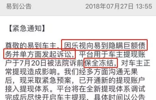 谁知时隔1年,问题重现。乐视起诉易到隐瞒巨额债务导致易到司机银行账户都被冻结,无法提现。