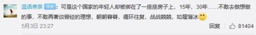 “可是这个国家的年轻人却被绑在了一座座房子上,15年,30年……不敢去做想做的事,不敢奢谈曾经的理想。”