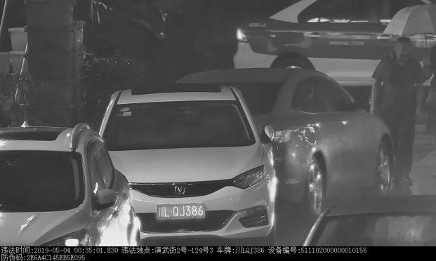 3、车牌号: 川LQJ386 车主:秦东 违停时间:2019-5-4 0:35:01 身份证:511102******264651