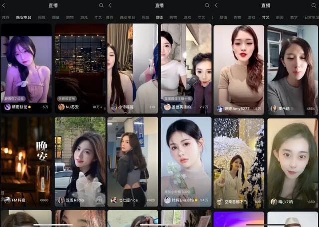 晚安电台、颜值、才艺3个频道多为秀场直播