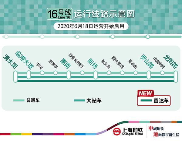 6月18日起,上海地铁16号线将开通龙阳路至滴水湖直通车。