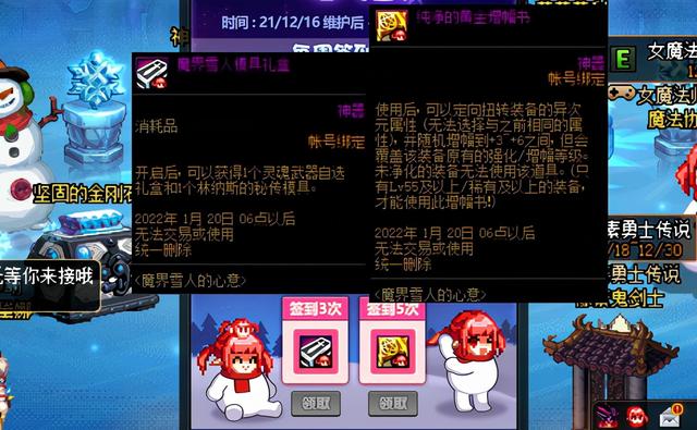 除了以上活动,在12.16版本中,还有另外一个特性变化。小镇里所有的画面都变成了以雪景和女魔为主的背景。雪花飘飘,各种女魔在街上玩,融化了一个老姑娘的心。