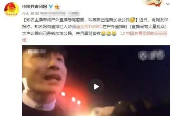 不仅在直播时被频频曝光,在小智的生日会上,情绪激动的帝老师还和警察发生了冲突。在被警方依法管理时,天皇甚至高喊自己是新加坡公民,中国警方无权逮捕自己。