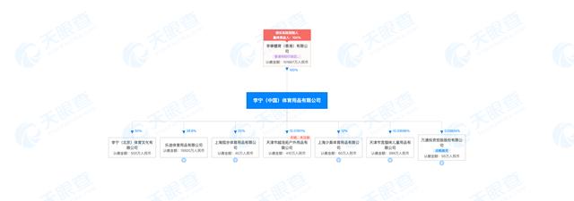 其中,李宁(中国)体育用品有限公司的疑似实际控制人、最终受益人为李宁体育(香港)有限公司,后者对前者100%控制,认缴金额107667万人民币。