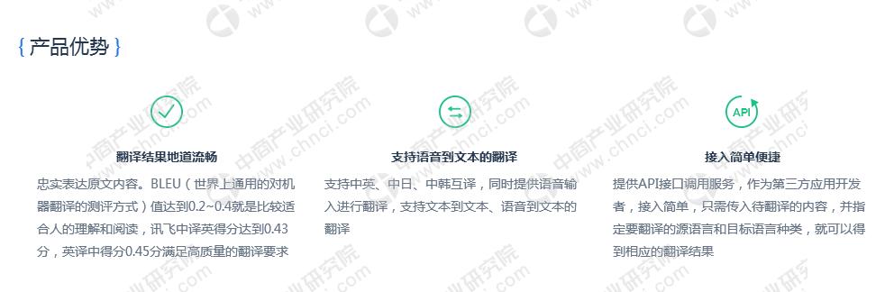 科大讯飞成立之时就开始在语言和翻译领域布局项目。基于NMT翻译框架,讯飞翻译服务采用了国际上领先的翻译技术,通过整合注意力网络机制和循环神经网络,完美模拟人脑翻译的机制,生成流畅的译文,支持中英、中日、中韩等多种语言互译。基于深度神经网络算法上的创新和突破,科大讯飞在2014年国际口语翻译大赛IWSLT上获得中英和英中两个翻译方向的全球第一名。在2015年又在由美国国家标准技术研究院组织的机器翻译大赛中取得全球第一的成绩。2017年科大讯飞还推出了多款硬件翻译产品,其中晓译翻译机1.0plus将世界上最先进的神经网络翻译系统,从在线系统优化成一个离线系统。它可以在没有网络的情况下提供基本翻译功能。