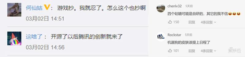 还比如,在腾讯发布“腾讯首个软硬件全自研”的多模态四足机器人之后,“全自研”这个词却引起了广大网友的争议。