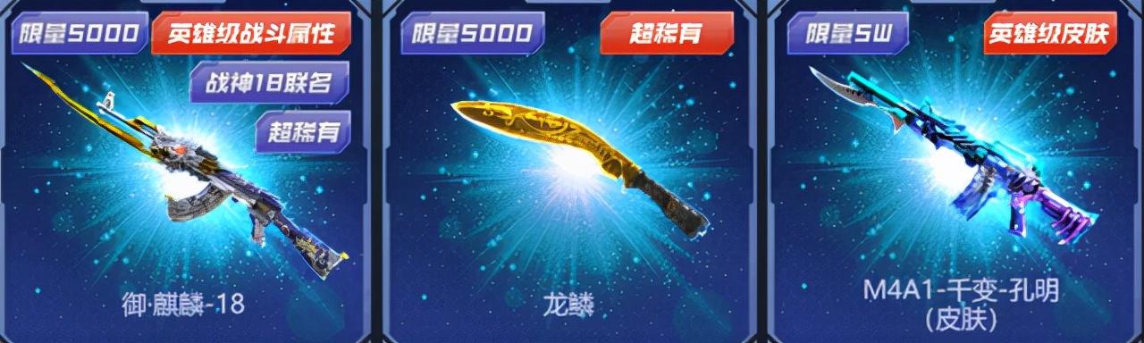接下来再来说说适合争一争的,这类道具有机会获取,但是机会也不太大,火麒麟的御版本,懂得都懂,5000份,喜欢的可以尝试抢一下,龙鳞和这个御火麒麟一样。而5W份的孔明皮肤,玩家们可以去争一争,这个千变的枪械虽然使用的玩家不多,但是拥有这个皮肤也是很不错的。