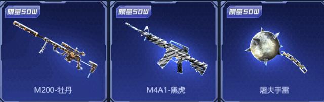 那么哪些是符合我们大众的呢?当然是一些基础类的枪械,m200的牡丹版本,限量50W份,基本可以每个人都抢到,后续的道具也是一样。M4黑虎版本是没有消音器的M4,具有一定的收藏价值。