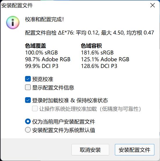 实测平均色彩偏离值 ΔE 0.18,最大色彩偏离值也只有 ΔE 0.91,相当准确。
