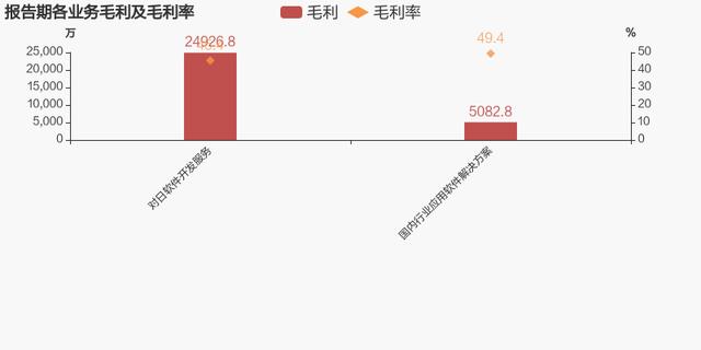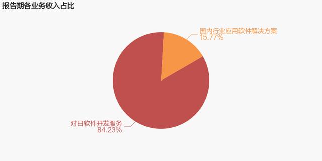 从业务结构来看,“对日软件开发服务”是企业营业收入的主要来源。具体而言,“对日软件开发服务”营业收入为5.5亿,营收占比为84.2%,毛利率为45.4%。