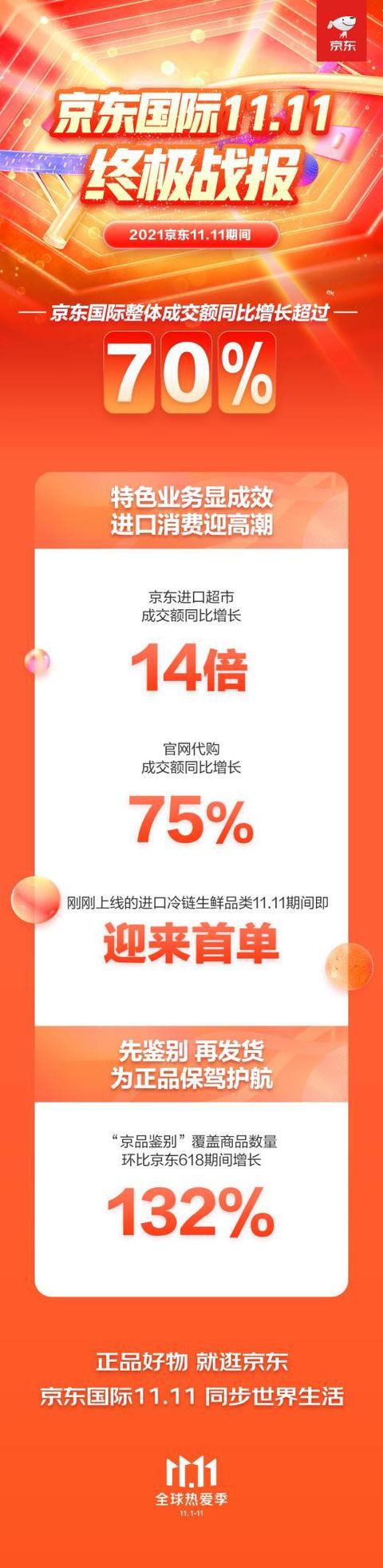 与此同时,京东国际各项特色业务也保持稳步增长,京东进口超市成交额同比增长14倍,海外进口日用品受到消费者欢迎;官网代购成交额同比增长75%,一直以来,京东国际都为国内消费者提供更多优质全球好物,并始终致力于搭建海外品牌商家与消费者之间信任的桥梁。