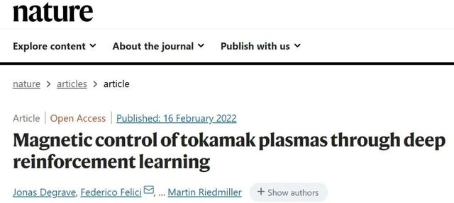 1.Degrave, J., Felici, F., Buchli, J. et al. Magnetic control of tokamak plasmas through deep reinforcement learning. Nature 602, 414–419 (2022). https://doi.org/10.1038/s41586-021-04301-9