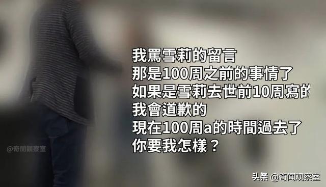我骂雪莉的留言,那是100周之前的事情了,如果是雪莉去世前10周写的,我会道歉的,现在100周的时间过去了,你要我怎样?