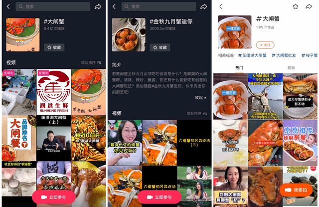 中秋和十一假期临近,“大闸蟹”、“金秋九月蟹逅你”等话题席卷抖音、快手,标志着一年一度的大闸蟹季已经拉开序幕。